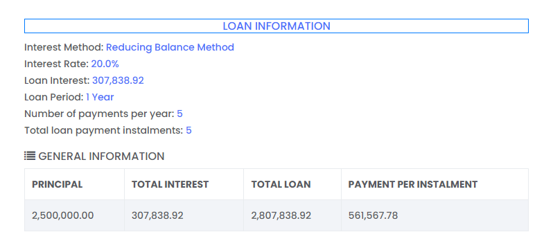 Flat Rate & Reducing Balance formulas, interest & amortization.